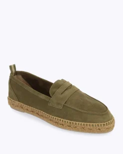 Alpargatas tipo mocasín de la marca Castañer en color oliva.