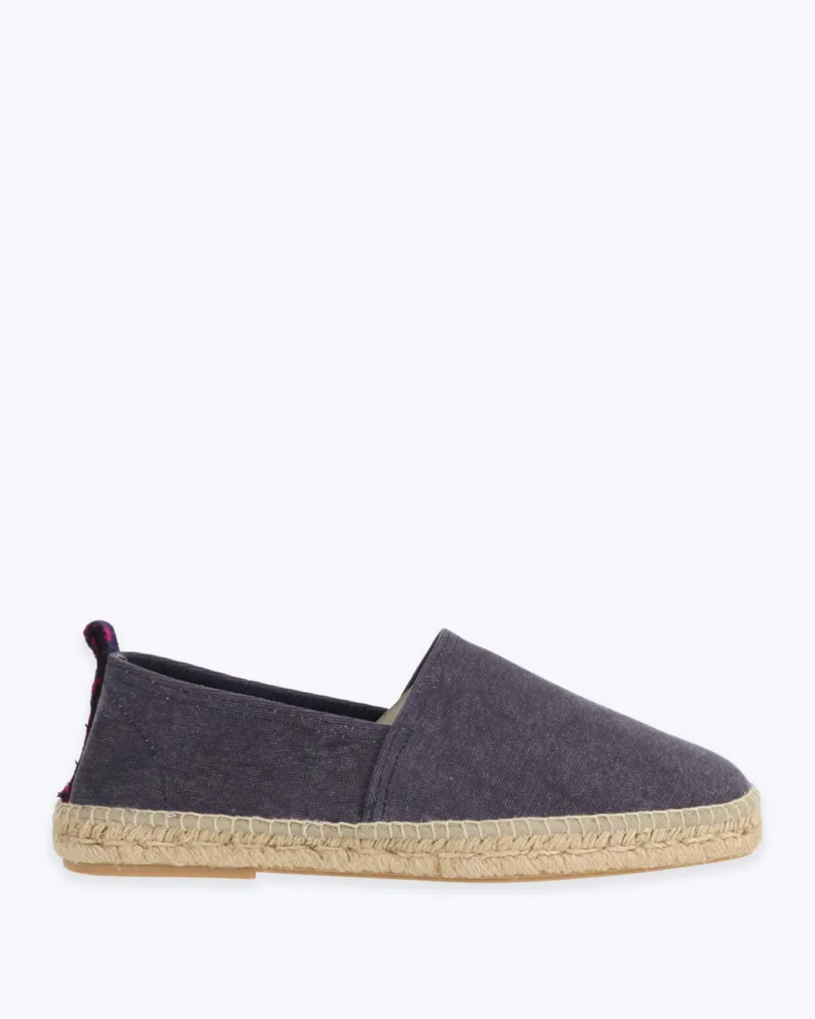 En color navy con un detalle de estampado étnico en la parte trasera. Suela de Yute tradicional que aporta un toque elegante y cómodo.