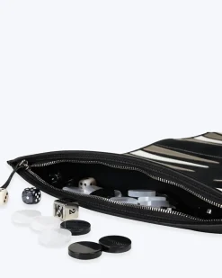 Backgammon de viaje de piel aterciopelada, de la marca Hector Saxe, fabricado a mano en Francia.