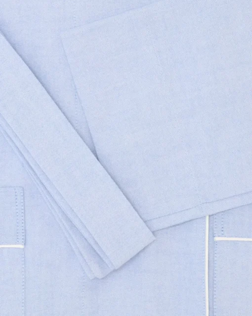 Bata de la marca Seems, color azul claro. Cruce delantero con cinturón. Bolsillo a la altura del pecho y dos a la altura de la cintura.