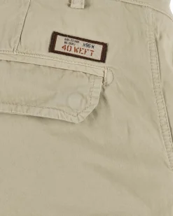 Bermudas cargo de la marca 40 WEFT, de color beige. Tiene cierre de abotonado, dos bolsillos en la parte trasera con solapa y cuatro bolsillos laterales.