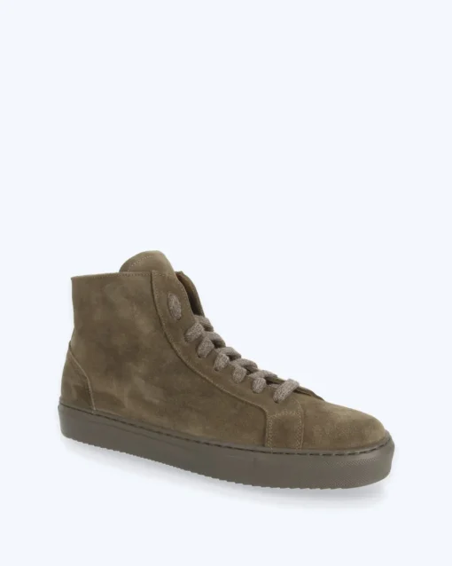 Botas de ante verde de la marca Fulham, con interior de piel y suela de goma.