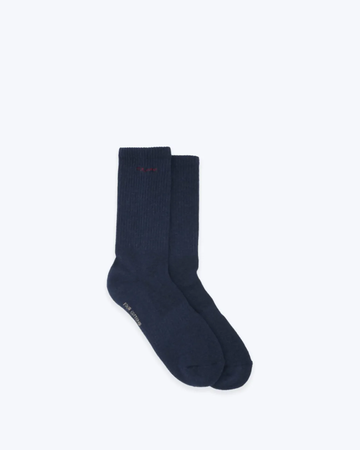 Calcetines de golf, de caña media, marca Fulham. Confeccionados en algodón. Color azul marino con letras bordadas en la caña en color burdeos.