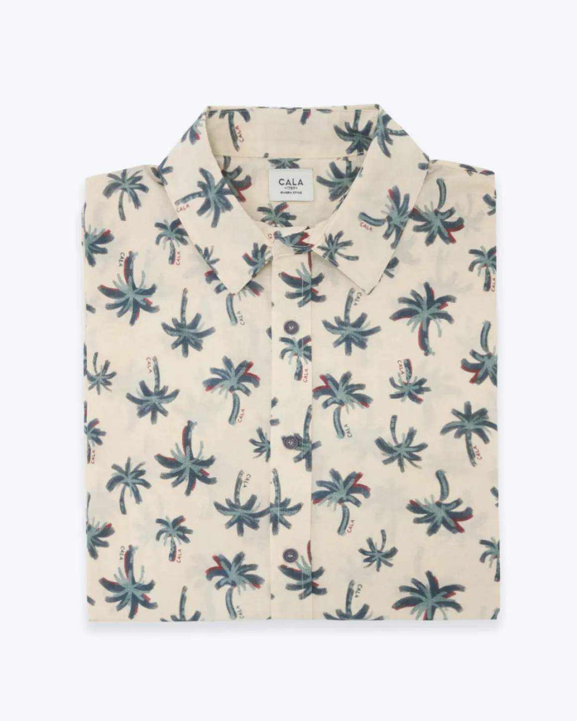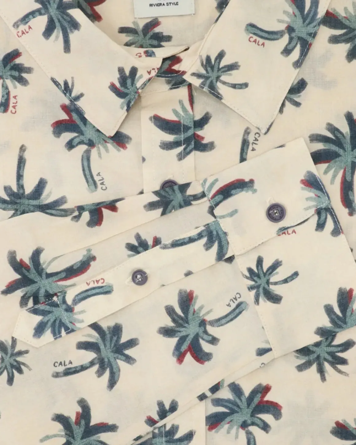 Camisa de la marca Cala 1789, en color beige con palmeras azules.