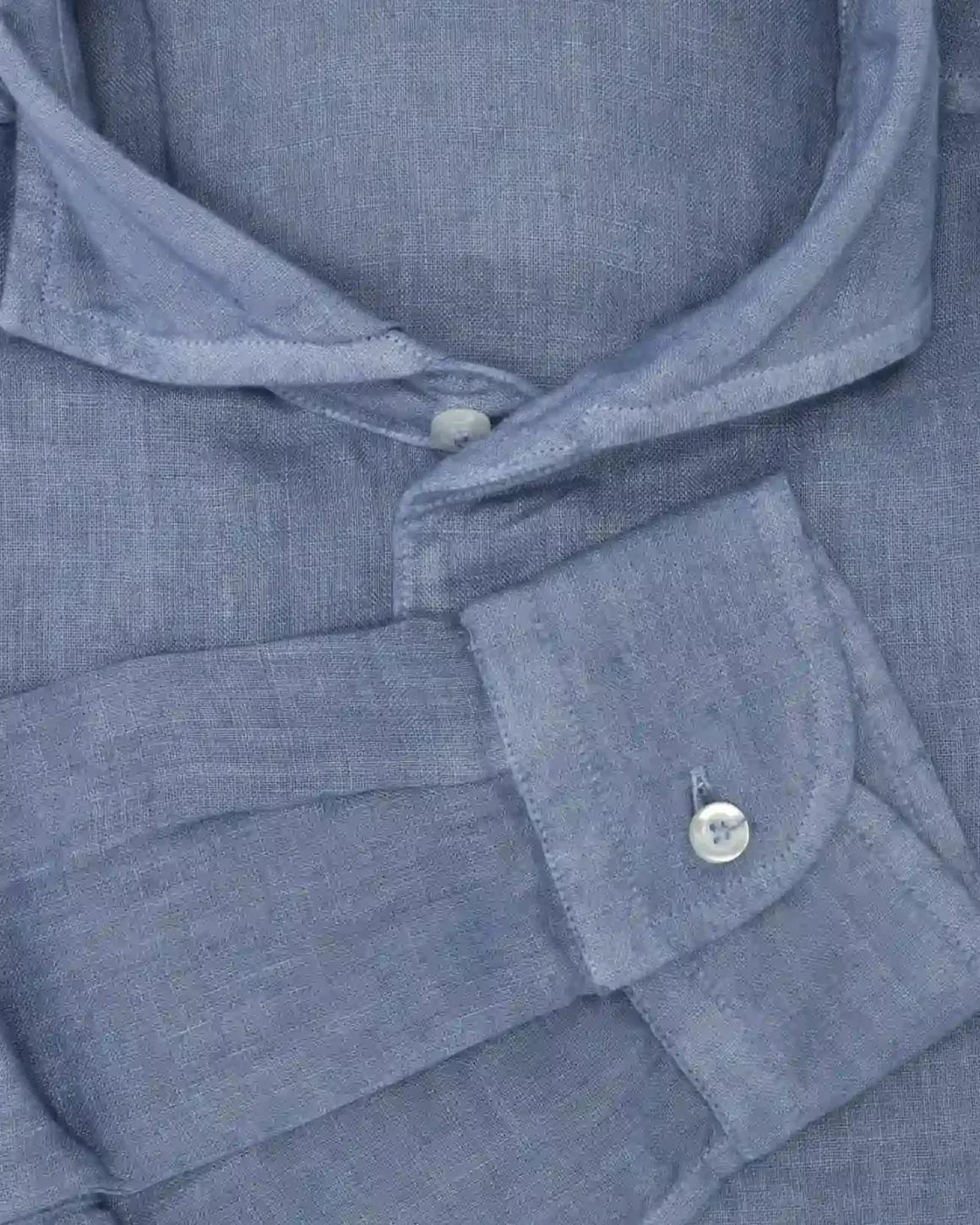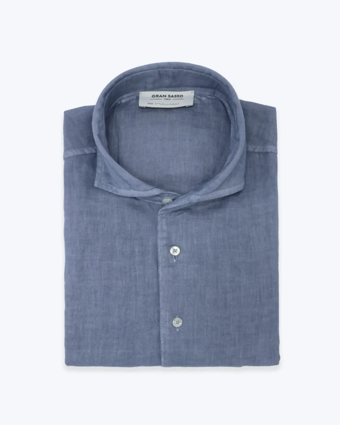 Camisa de lino de la marca Gran Sasso, fabricada exclusivamente para Fulham, en color azul denim.