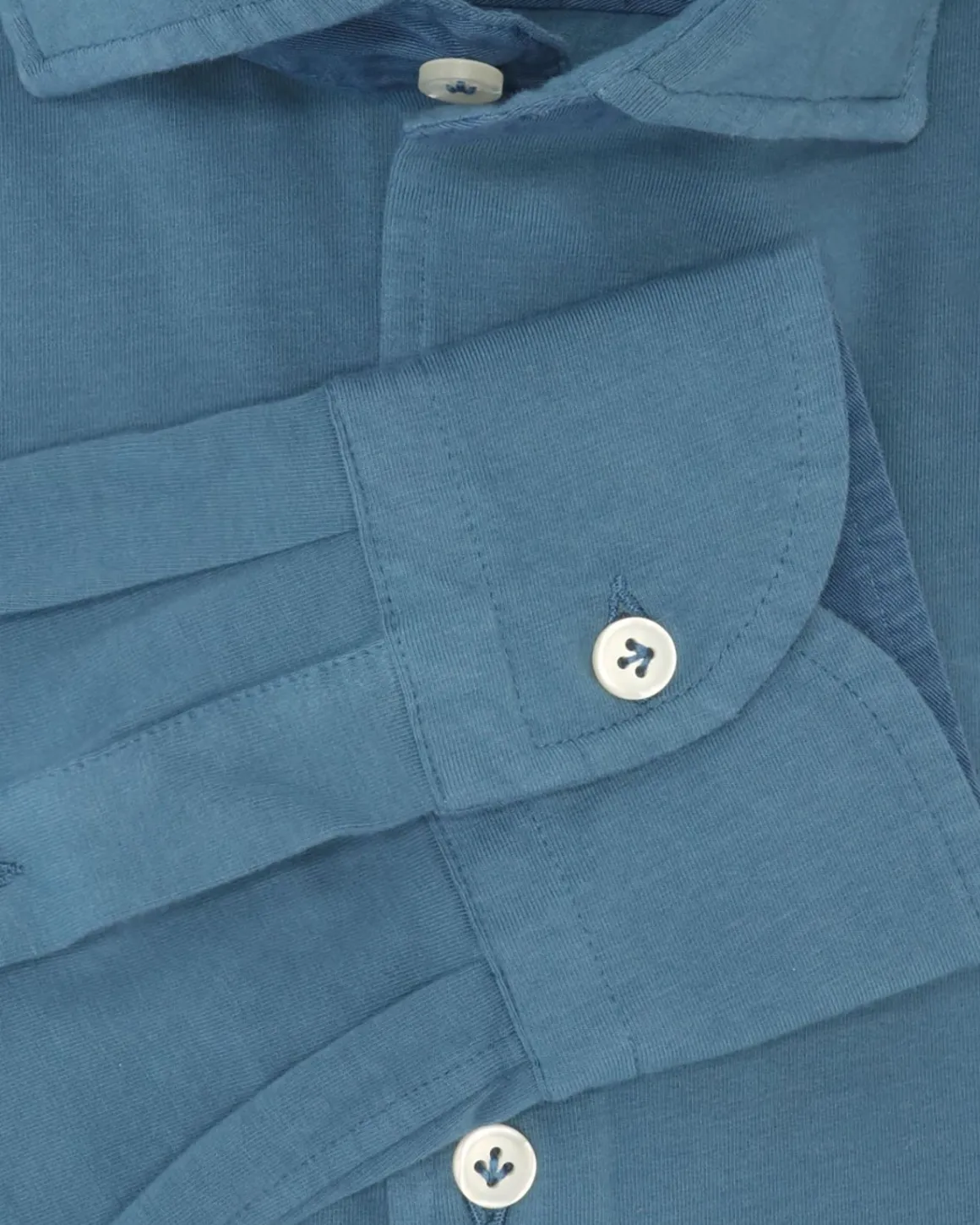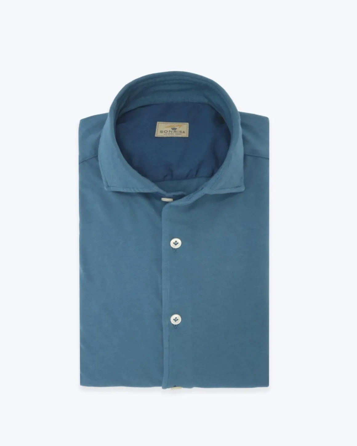 Camisa de jersey de la marca Sonrisa en color azul, con el cuello cutaway.