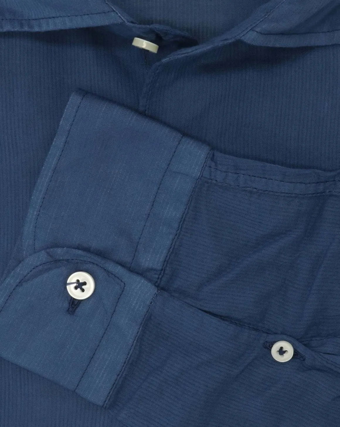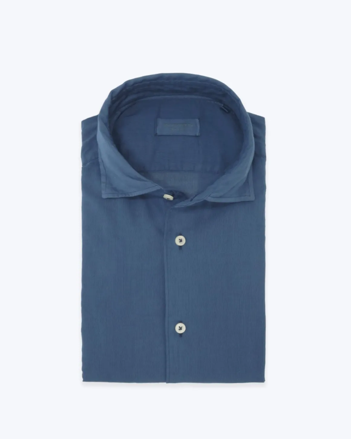Camisa de la marca Mastricamiciai azul con rayas muy finas y con el cuello cutaway.