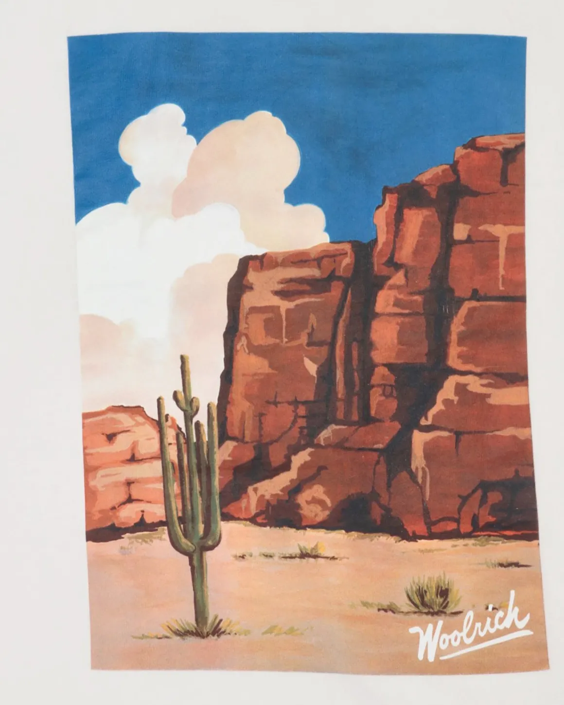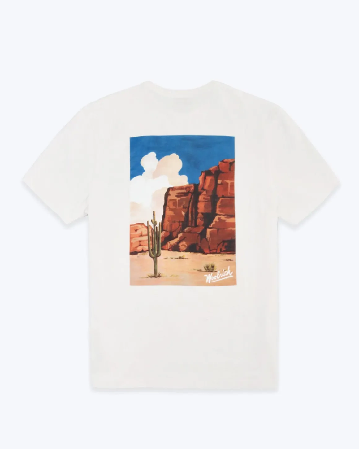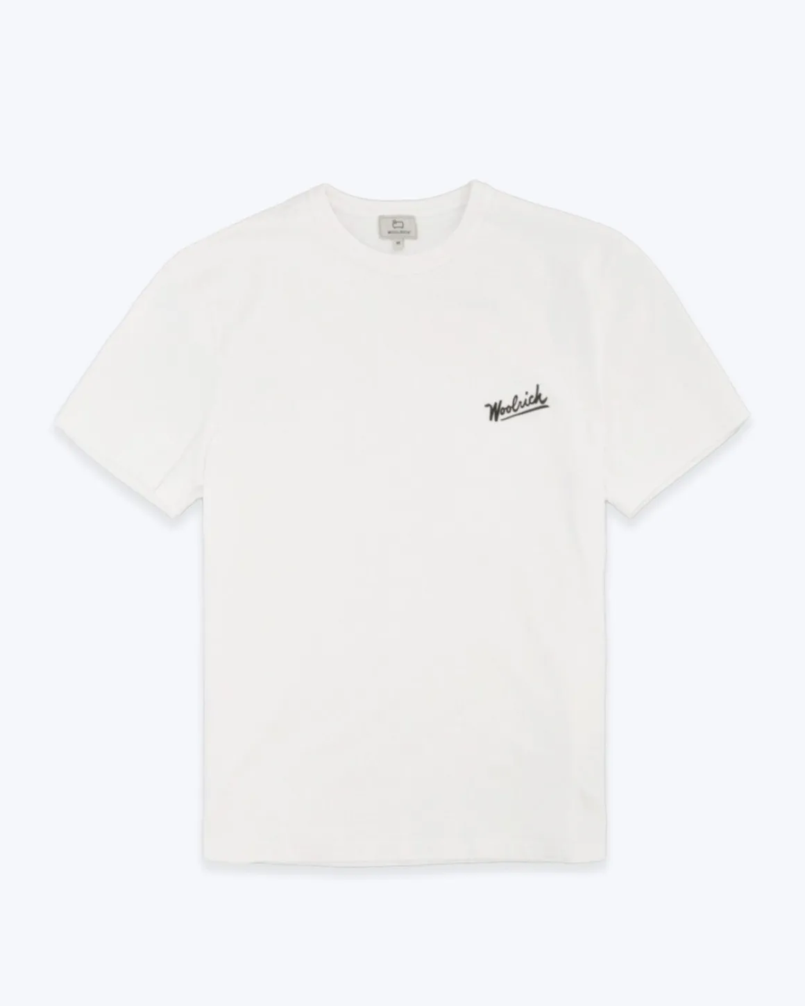 Camiseta de manga corta de la marca Woolrich, en color blanco. Con un pequeño logotipo en la parte del pecho y estampado del oeste en la parte trasera.