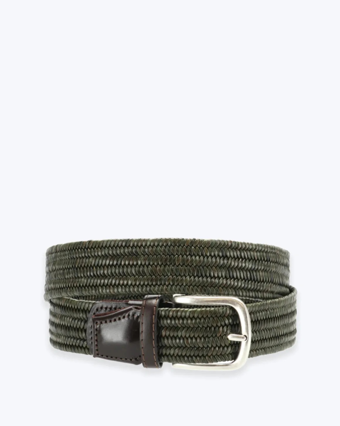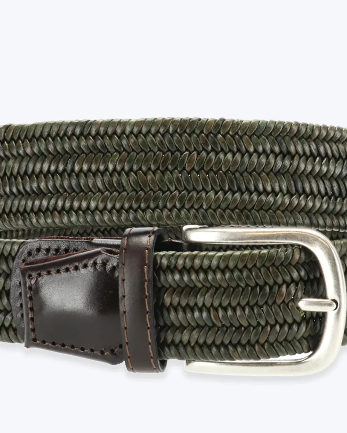 Cinturón elástico trenzado de la marca Athison, de color verde oscuro.