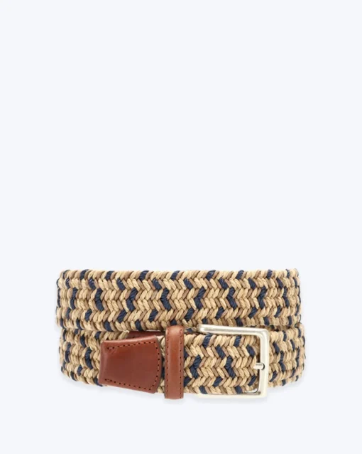 Cinturón trenzado de la marca Fulham de color beige y azul.