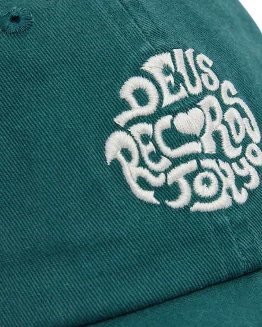 Gorra de la marca Deus, hecha de algodón, con un intenso lavado enzimático a la piedra, decorada con bordados en la parte frontal y trasera.