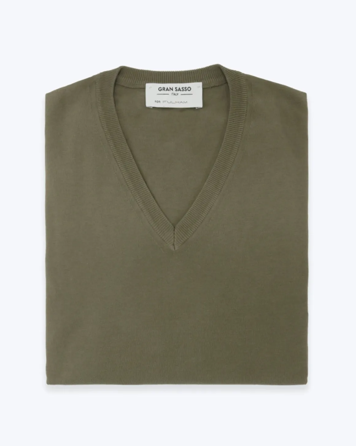 Jersey diseñado para Fulham por la marca italiana Gran Sasso en color verde, confeccionado en tejido de algodón.
