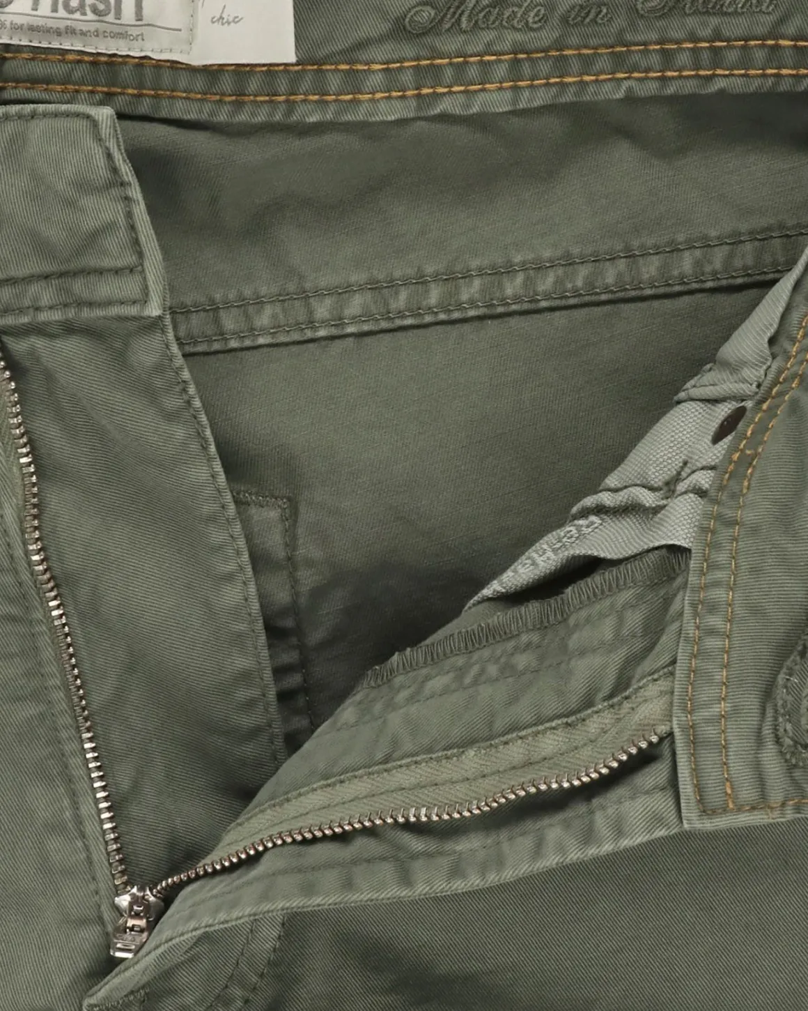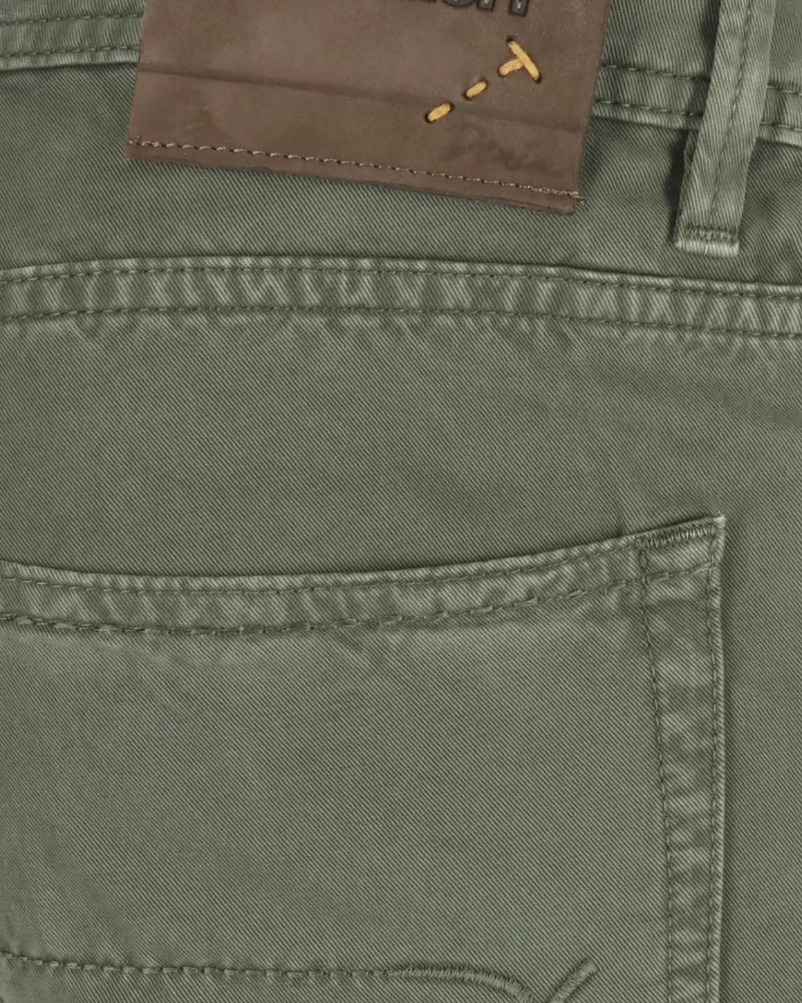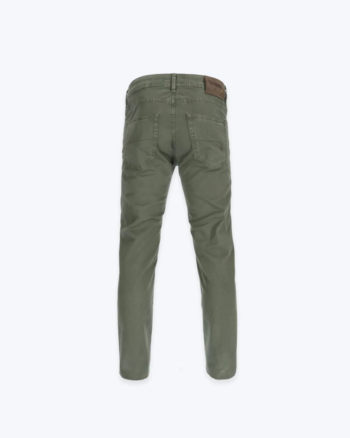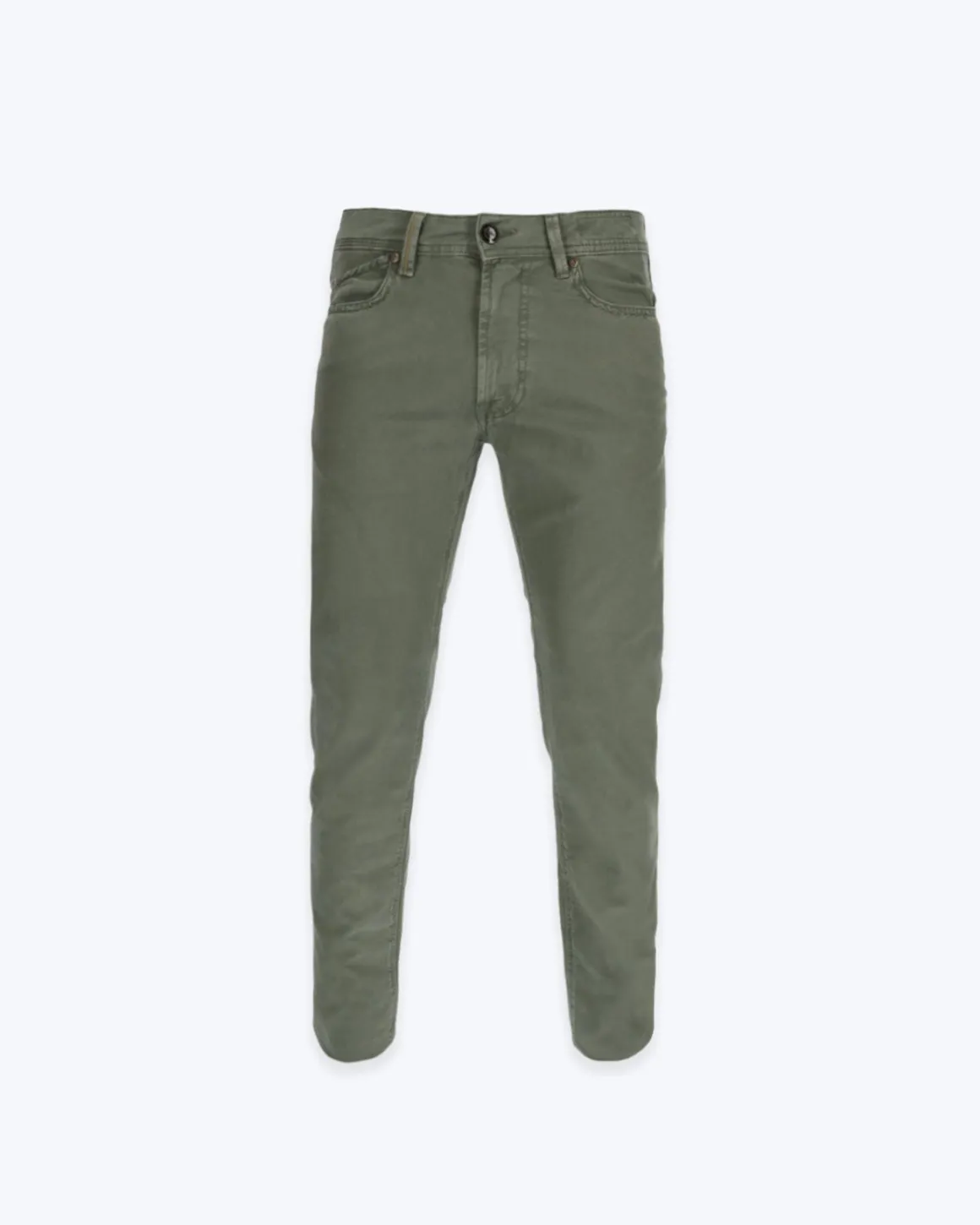Pantalón cinco bolsillos de la marca Re-HasH en color verde, con corte regular slim fit. El cierre es con cremallera y botón. Además, tiene bolsillos laterales y dos en la parte trasera.