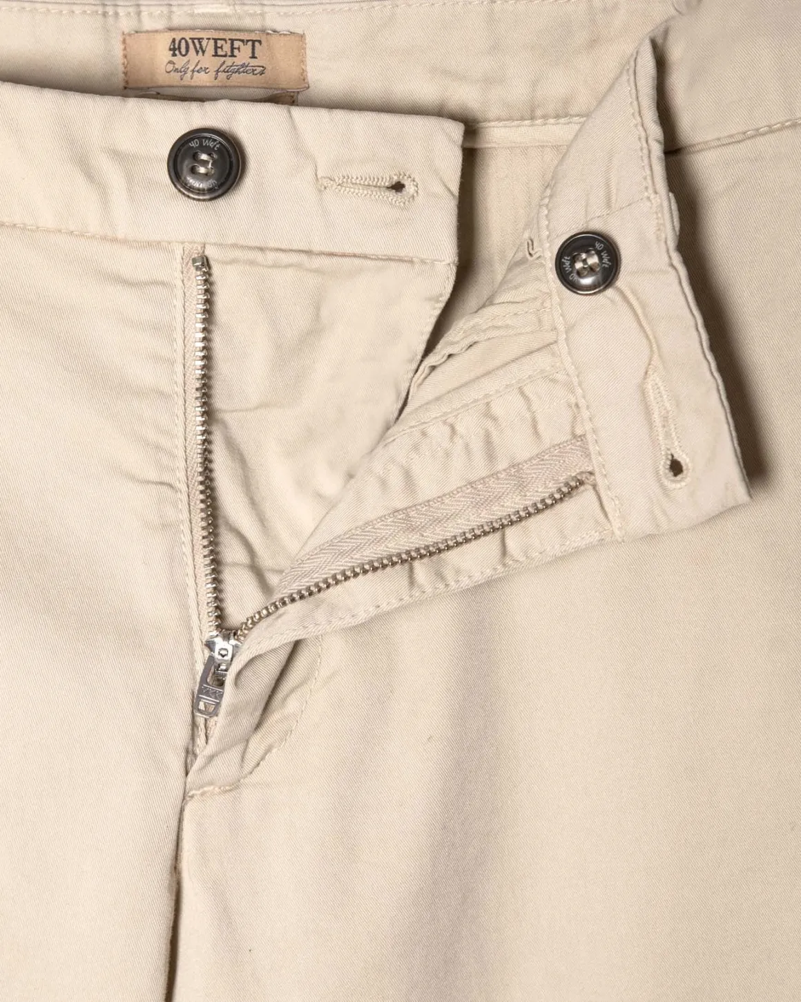 Pantalón chino de entretiempo, de la marca 40WEFT en color beige.