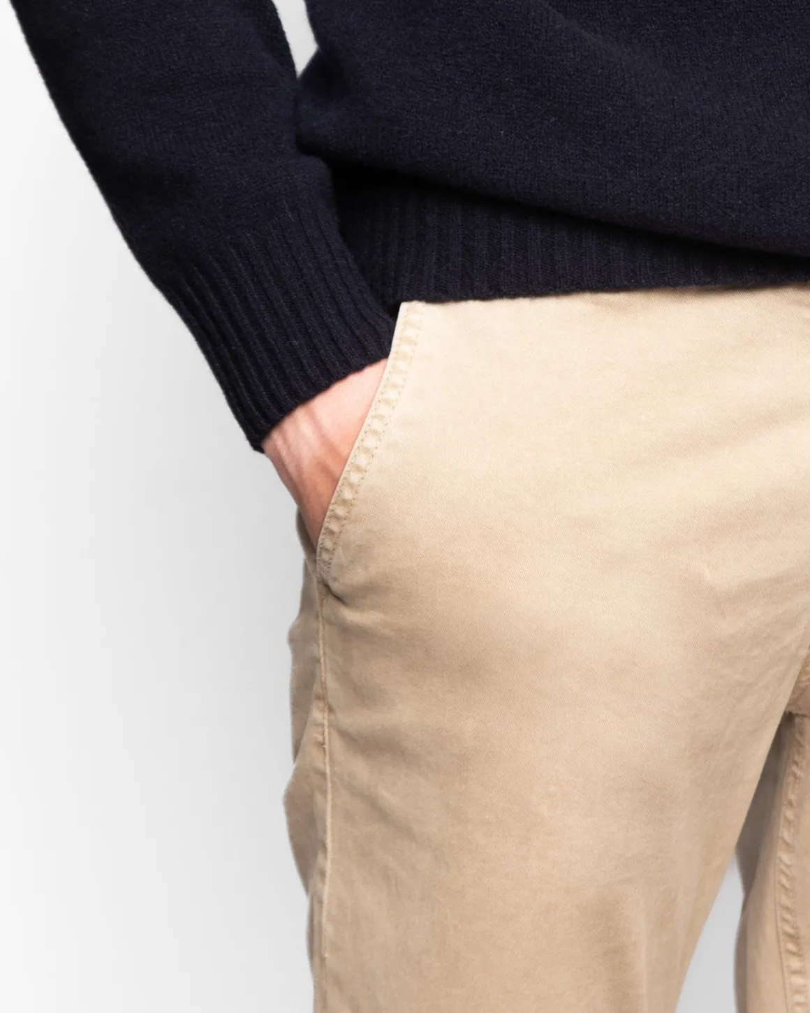 Presenta un corte regular slim fit, ofrece un ajuste cómodo y equilibrado. Es ligeramente entallado en las piernas, sin ser demasiado ajustado ni holgado.