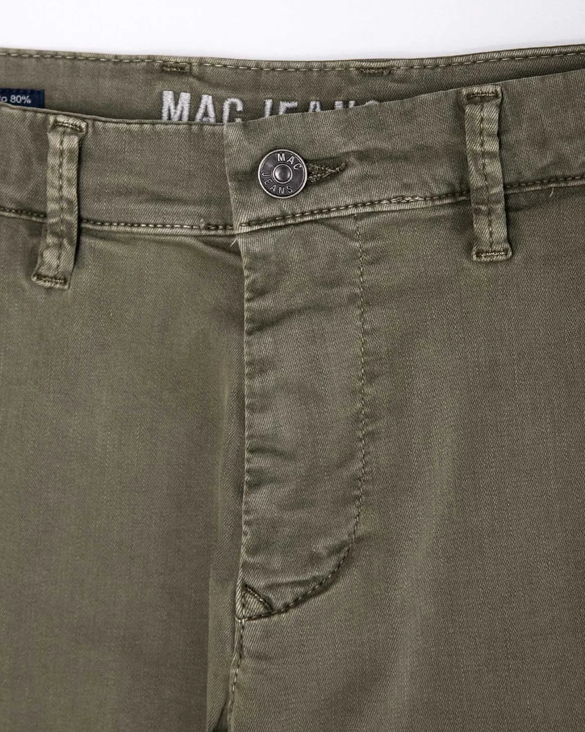 Pantalón chino de entretiempo, de la marca Mac Jeans en color verde.