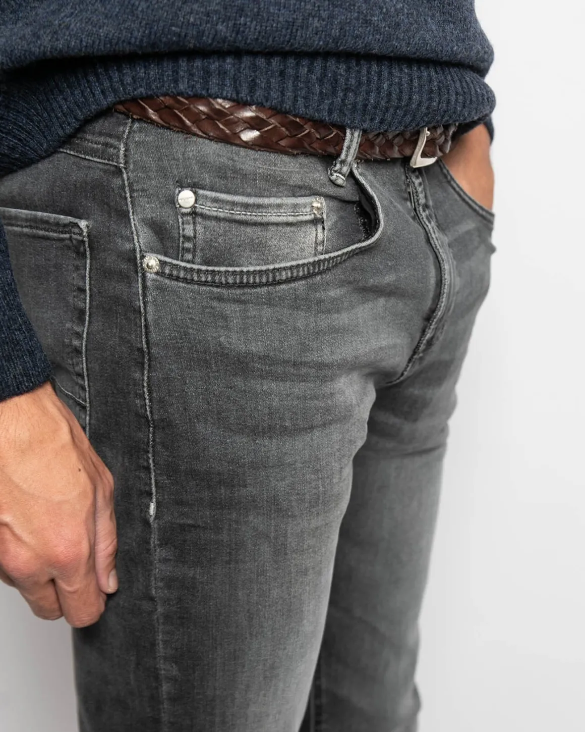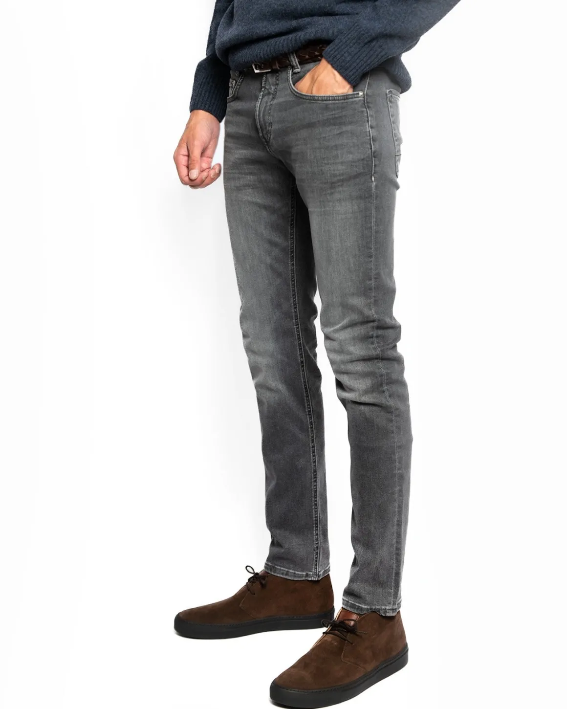 Pantalón vaquero gris de la marca Mac Jeans, con corte regular slim fit. La pernera se va estrechando ligeramente hasta el tobillo para estilizar la pierna.