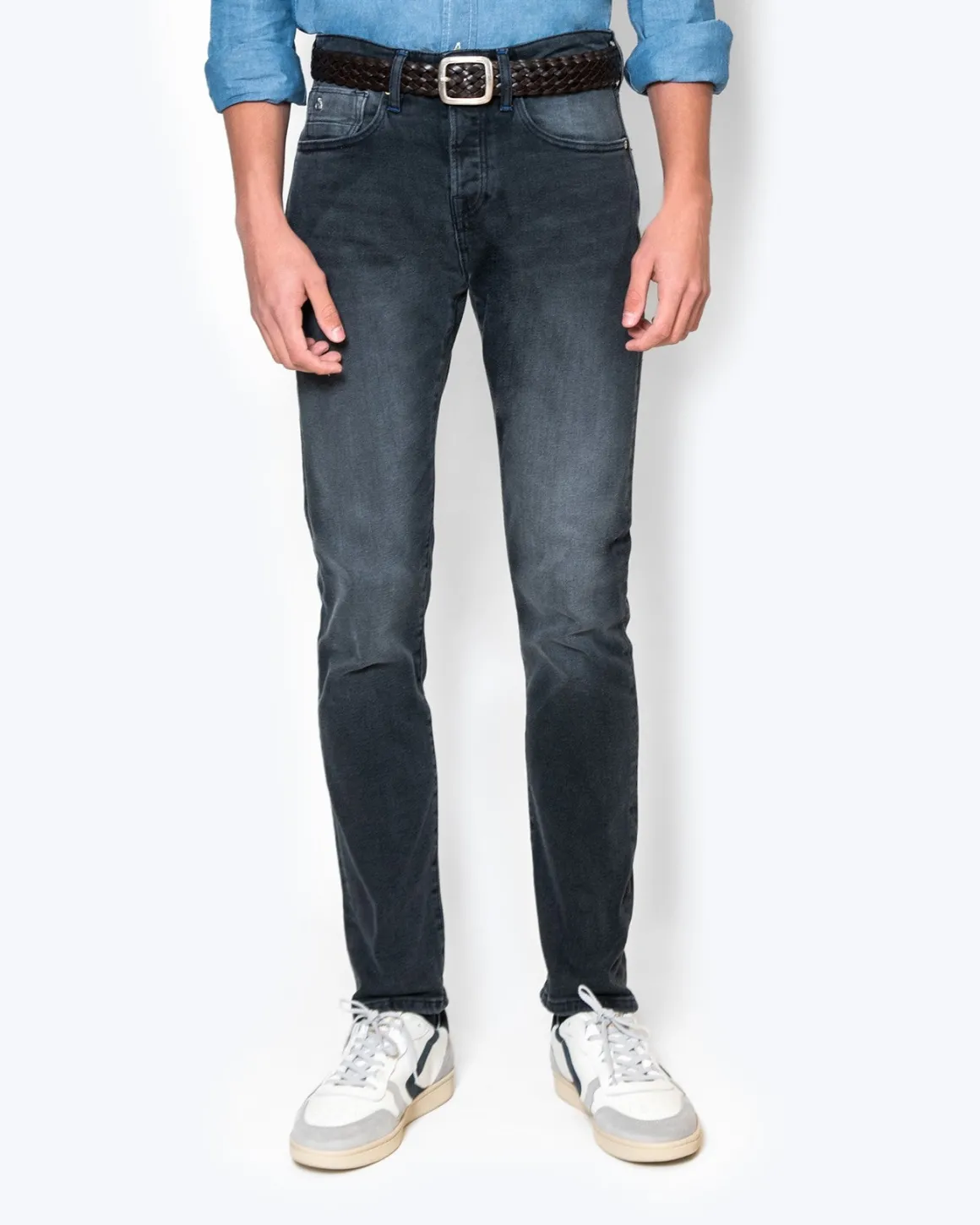 Pantalón vaquero azul grisáceo marca Scotch & Soda, modelo Ralston de entretiempo.