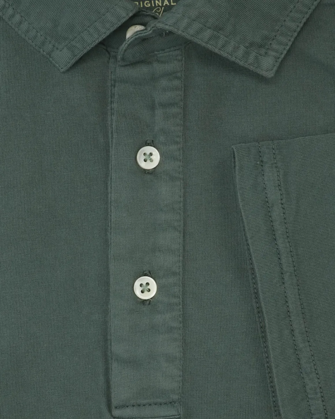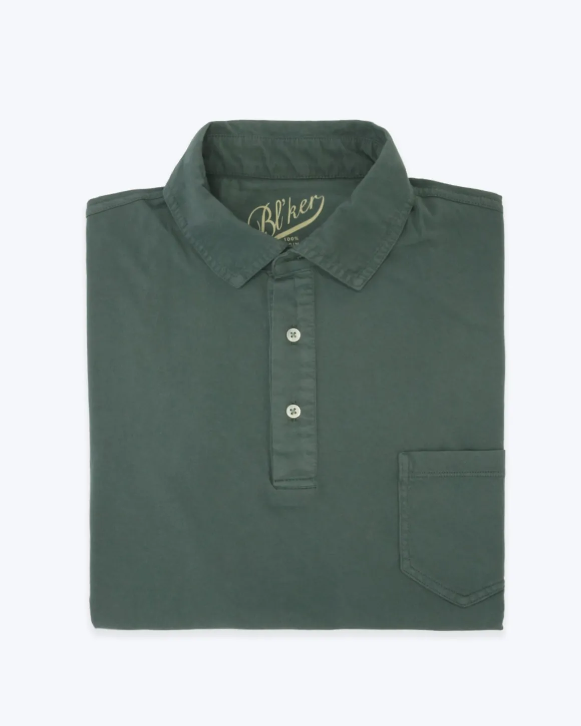 Polo manga corta de la marca Bl´ker, en tejido jersey, de color verde. Tiene un bolsillo pequeño delantero. Cuello clásico, cierre frontal con tres botones y bolsillo a la altura del pecho.