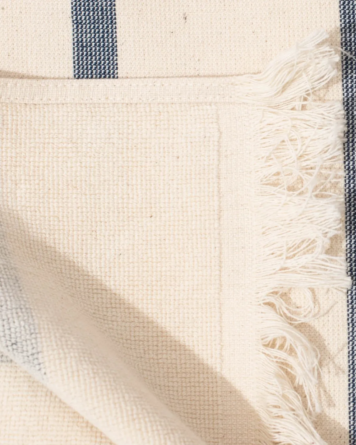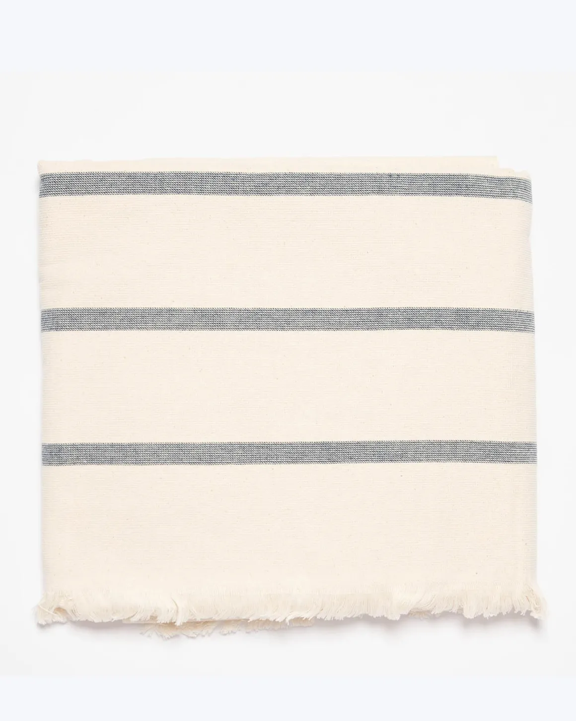 Toalla de la marca Torres Novas, estampada con rayas azules. Confeccionada en tejido de algodón.