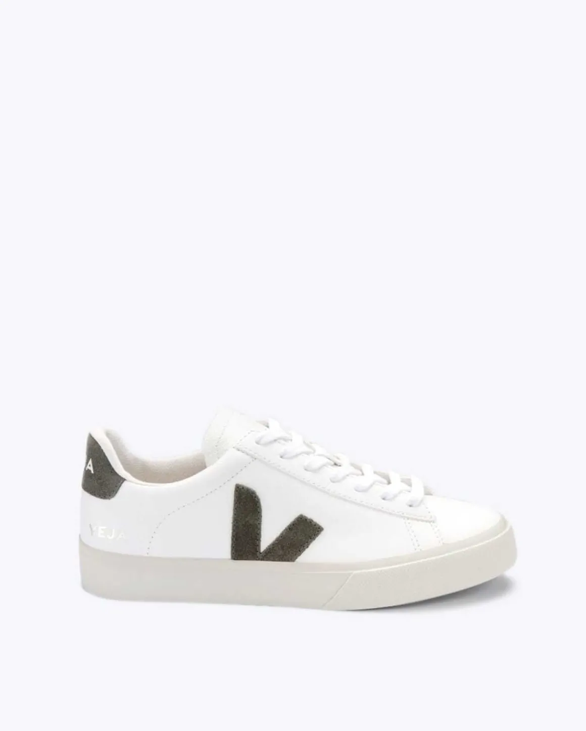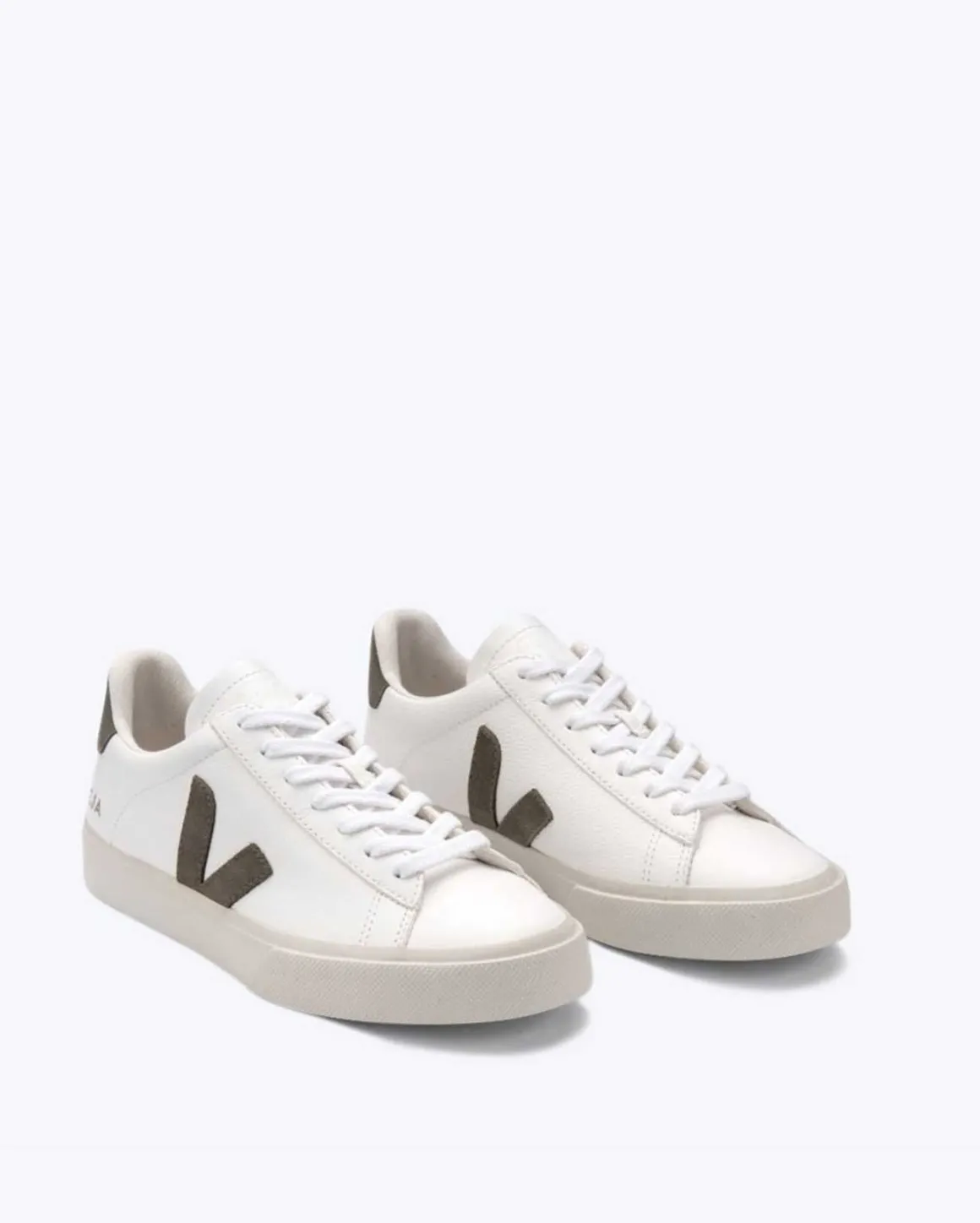 Zapatillas de la marca Veja modelo urca, de piel en color blanco, con detalles en kaki.