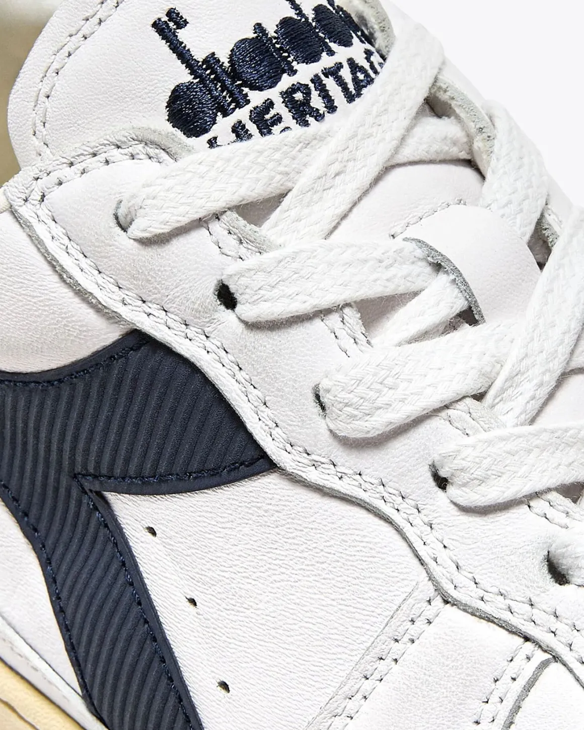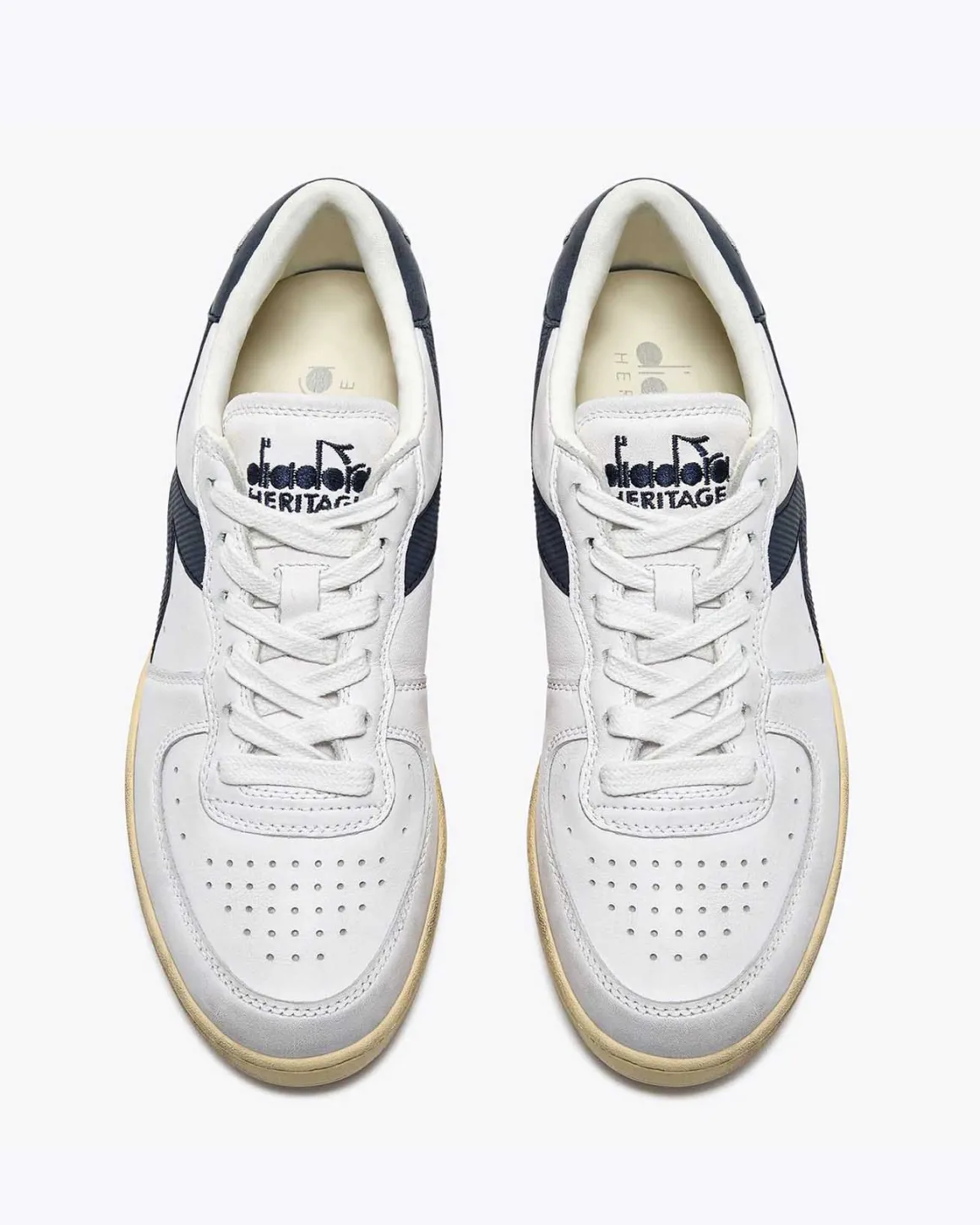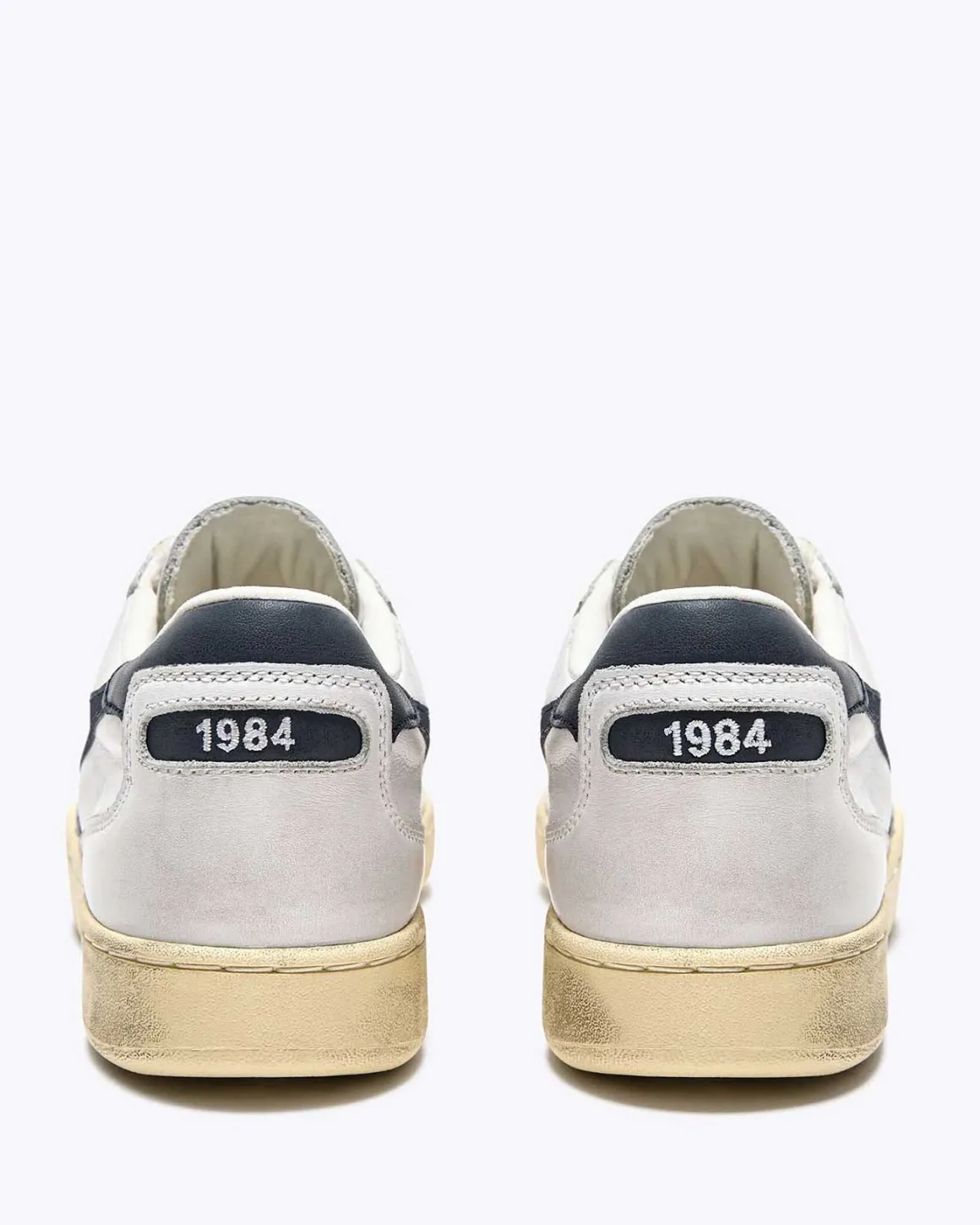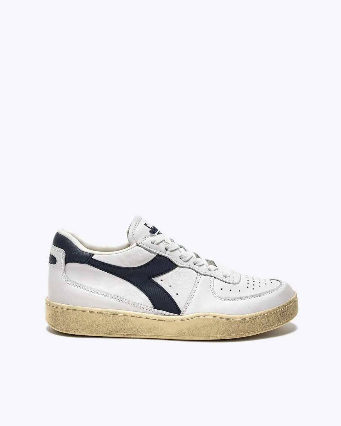 Zapatillas de la marca Diadora modelo Mi basket low used, color blanco/azul.