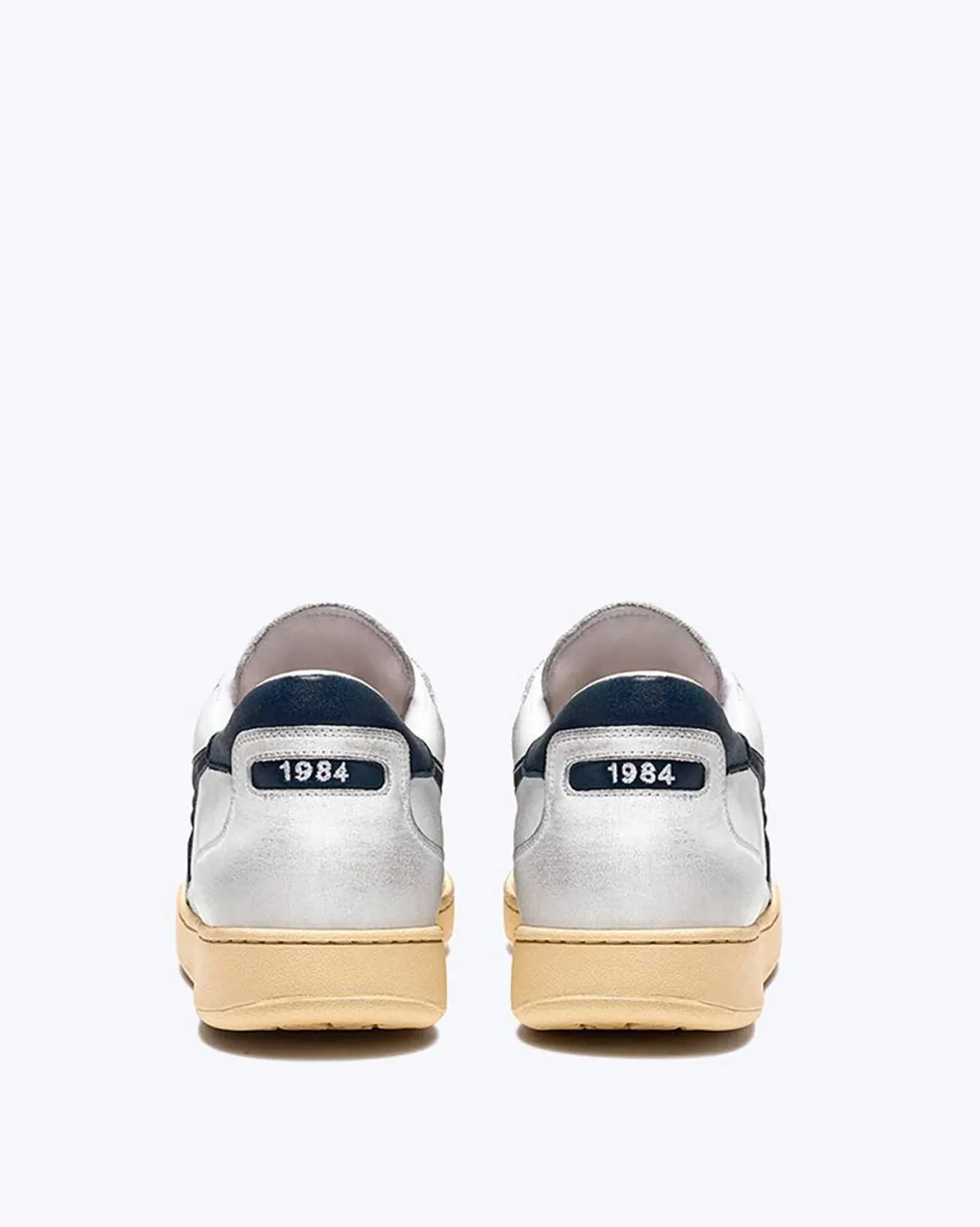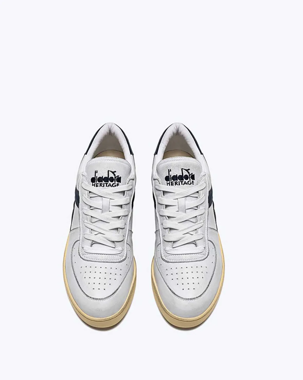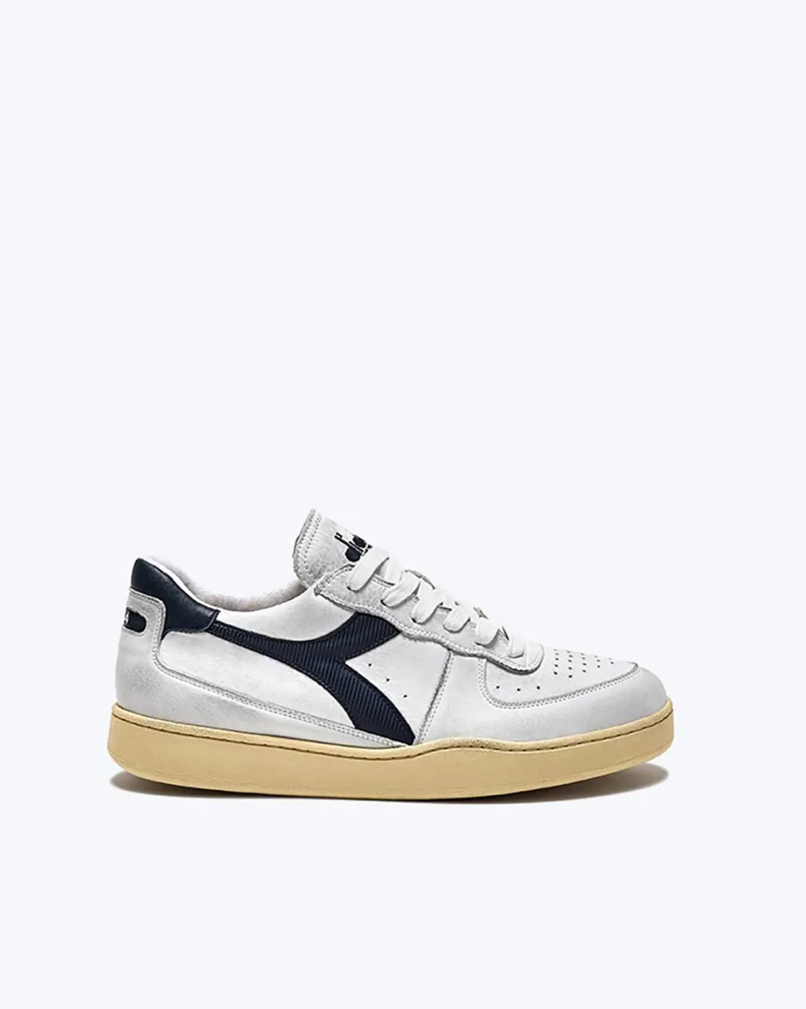 Zapatillas de la marca Diadora modelo Mi basket low used, color blanco/azul.