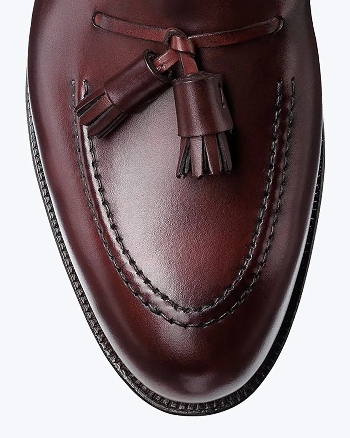 Piel de ternero bruñida (burnished calf). Color burdeos. Suela de goma City. Ancho estándar (E).